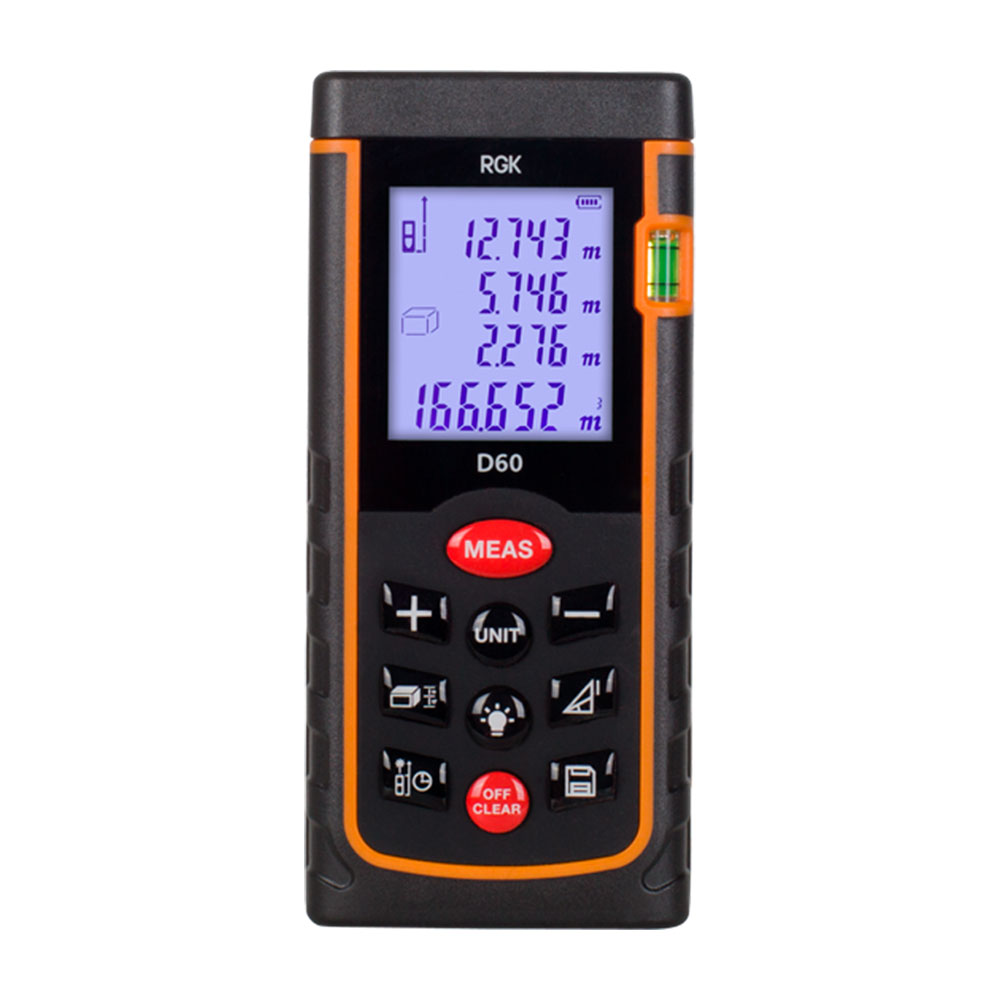 Лазерный дальномер RGK D60 — это современный прибор для измерения расстояний до 60 метров, обладающий широким набором функций и способный заменить собой рулетку, калькулятор и блокнот одновременно.