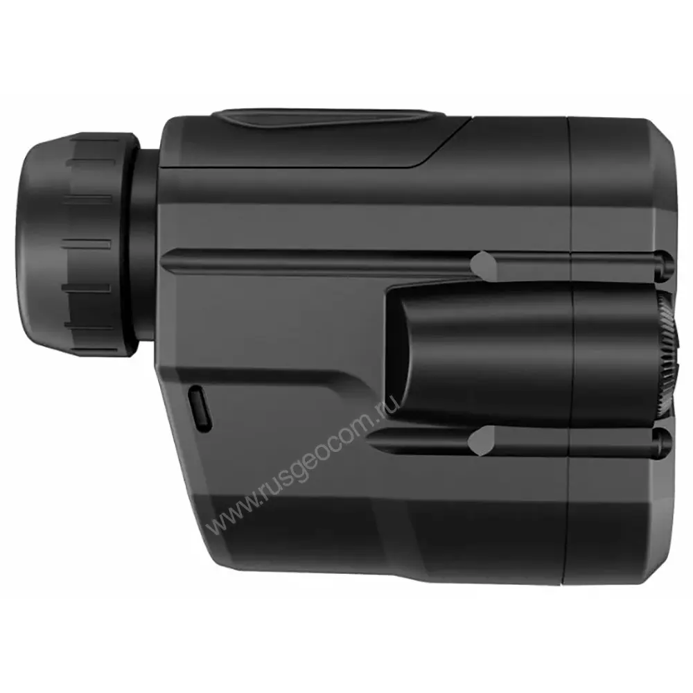 Оптический дальномер Yukon Extend LRS-1000 хорошо лежит даже во влажных руках благодаря покрытию Soft-Touch. Комфортный и крепкий хват обеспечивается также за счет оптимальной формы корпуса. Часть прибора, обращенная к пользователю, снабжена специальным скосом для идеальной прикладки. Всеми функциями устройства можно управлять при помощи всего 2 кнопок. Показания отображаются тонкими четкими линиями, которые не закрывают объект наблюдения.