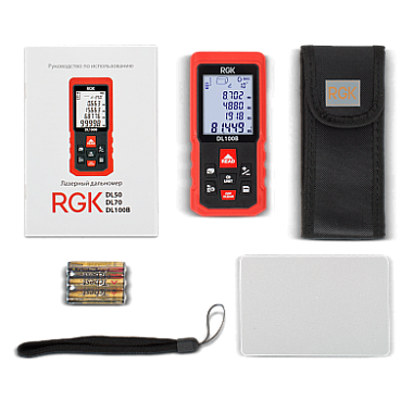 Таймер - позволяет исключить погрешность от вибрации прибора при нажатии кнопок.Подсветка дисплея – данные на экране всегда хорошо видны, вне зависимости от освещения.Звуковой сигнал оповещает об измерении или об ошибке, что удобно, когда вы не видите экран лазерного дальномера RGK DL100B. При необходимости функцию можно отключить. Корпус RGK DL100B изготовлен в соответствии с классом пыле-влагозащиты IP54. На практике это означает, что прибор можно использовать даже на запыленных стройплощадках или при повышенной влажности. Для установки дальномера на штатив предусмотрено крепление 1/4". Питание лазерного дальномера RGK DL100B осуществляется от трех батареек типа ААА или аккумуляторов аналогичного класса. Одного комплекта батарей хватает для 8000 измерений. Для экономии заряда лазер и подсветка экрана автоматически отключаются через 20 секунд, а сам прибор - через 2,5 минуты.