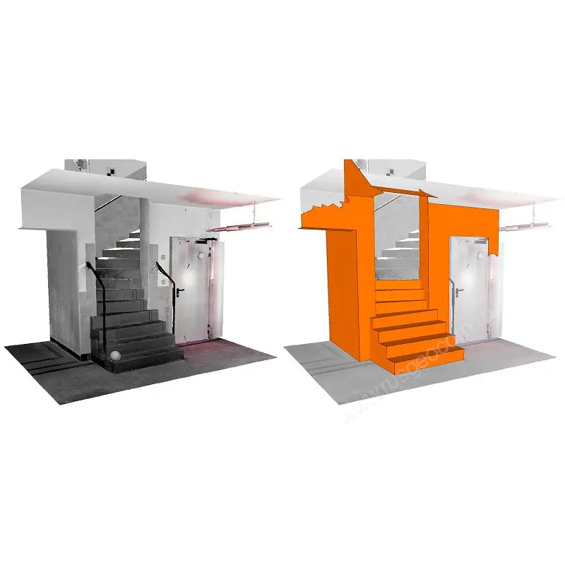 Система определяет плоские регионы из облака точек, пересекает их в проверенные, замкнутые поверхностные 3Д модели, которые могут быть экспортированы в любую CAD систему поддерживающую стандартные форматы данных для обмена.