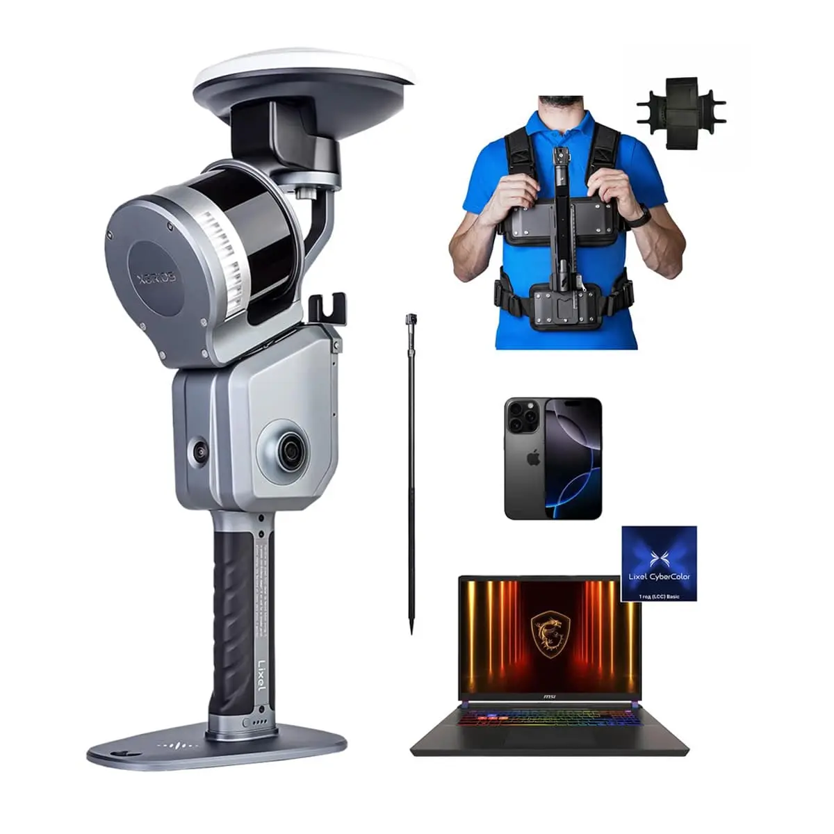 Лазерный SLAM сканер XGRIDS Lixel L2 Pro 32/120 RTK Survey Grade представляет собой мобильное устройство с функциями LiDAR и сдвоенной 48 Мп панорамной камеры, которое обеспечивает сбор данных для 3D-моделирования в движении и поддерживает возможность визуализации, с раскрашиванием облака точек в реальном времени, без обязательной постобработки. Для точного позиционирования в процессе съемки, с целью автоматической координатной привязки получаемых данных, прибор оснащается визуальной камерой, 6-канальным инерциальным модулем и ГНСС приемником с антенной класса Survey, с функцией RTK, который способен уверенно работать даже в сложных условиях прохождения сигналов.