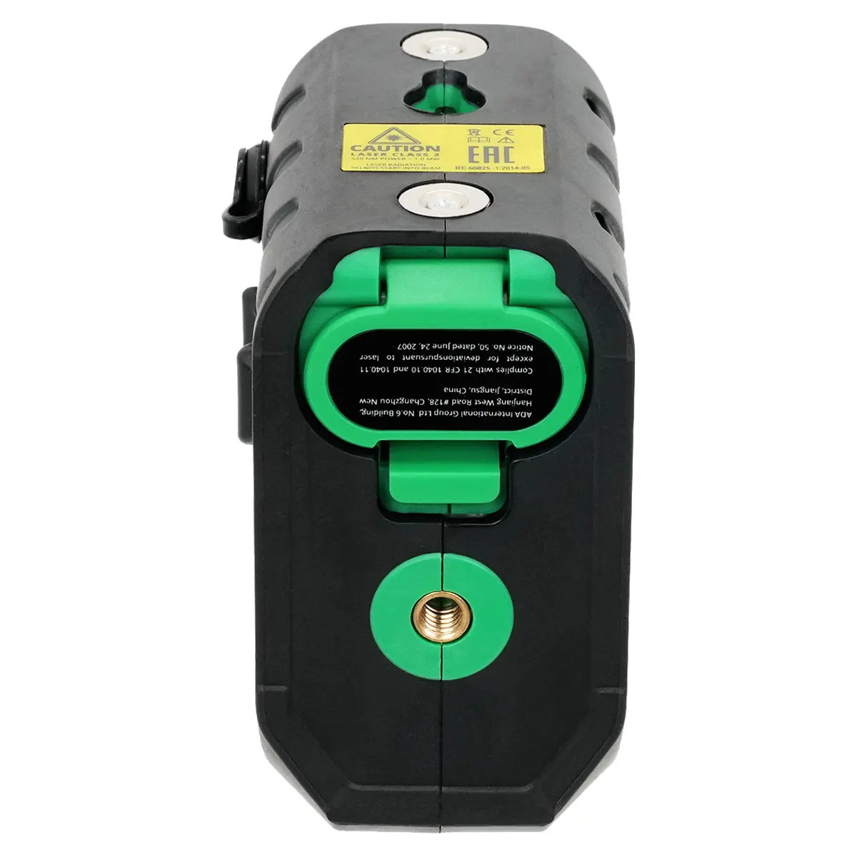 МАГНИТНОЕ КРЕПЛЕНИЕ. В корпус прибора вмонтированы два неодимовых магнита. С их помощью ADA ARMO 2D GREEN легко крепится к металлическим основаниям: трубам или направляющим для гипсокартона. На немагнитных вертикальных поверхностях уровень крепится через проушину для самореза в корпусе. Для установки на крепление или штатив снизу находится резьба 1/4 дюйма.