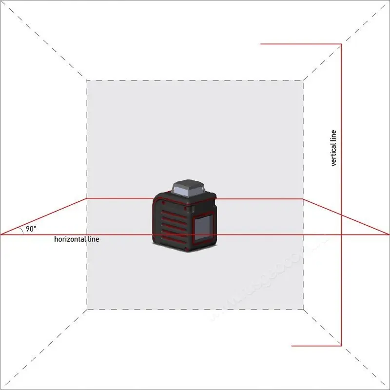 Помимо горизонтального луча на 360 градусов, прибор проецирует вертикальную линию перед собой. Благодаря этому можно одновременно выполнять горизонтальную и вертикальную разметку. Угол между линиями составляет ровно 90 градусов для точной и быстрой поклейки плитки, обоев, бордюров и т. д.