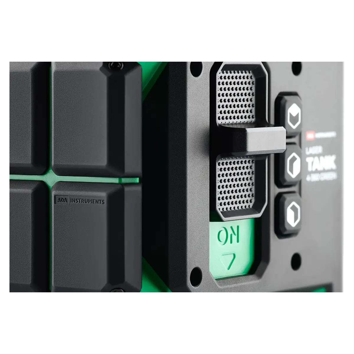 Яркие зеленые лучи. Зеленый луч профессионального лазерного уровня ADA LaserTANK 4-360 GREEN отлично подходит для разметки при ярком свете. Зеленую лазерную линию отлично видно по сравнению с красной при равных условиях освещенности.