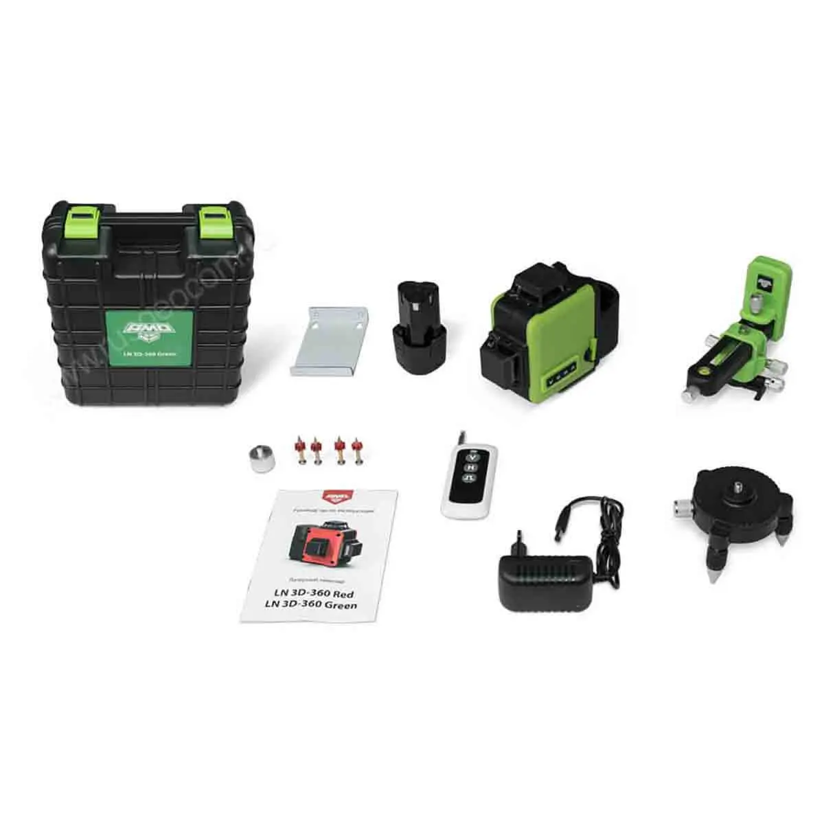 Лазерный уровень AMO LN 3D-360 Green с яркими зелеными лучами, которые видно по всему периметру помещения - это необходимый прибор для быстрого и эффективного ремонта. Конфигурация линий универсальна - горизонт и 2 вертикали, хорошо различимые на расстоянии до 20 м.