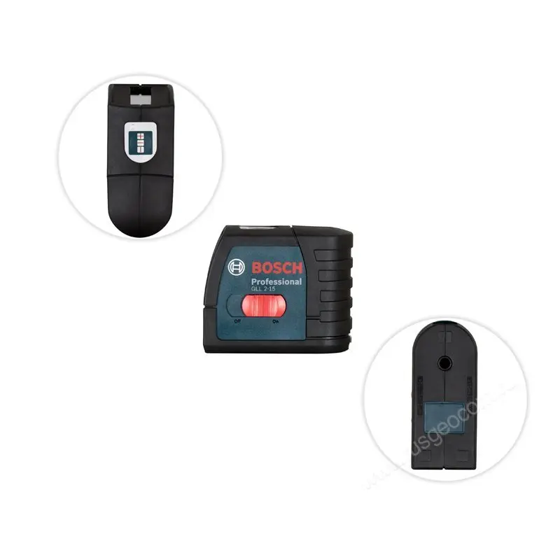 Питание прибора осуществляется с помощью трёх батарей АА. Одного заряда хватает на 15 часов непрерывной работы. В целях экономии энергии лазерный нивелир оснащён функцией автоматического отключения, срабатывающей после 120 минут простоя. Если автоотключение не требуется, функцию можно выключить. При отключении прибора также блокируется маятниковая система самовыравнивания: это предотвращает повреждение компенсатора при транспортировке. В цену нивелира Bosch GLL 2 15 Professional также входит настенное крепление BM3.