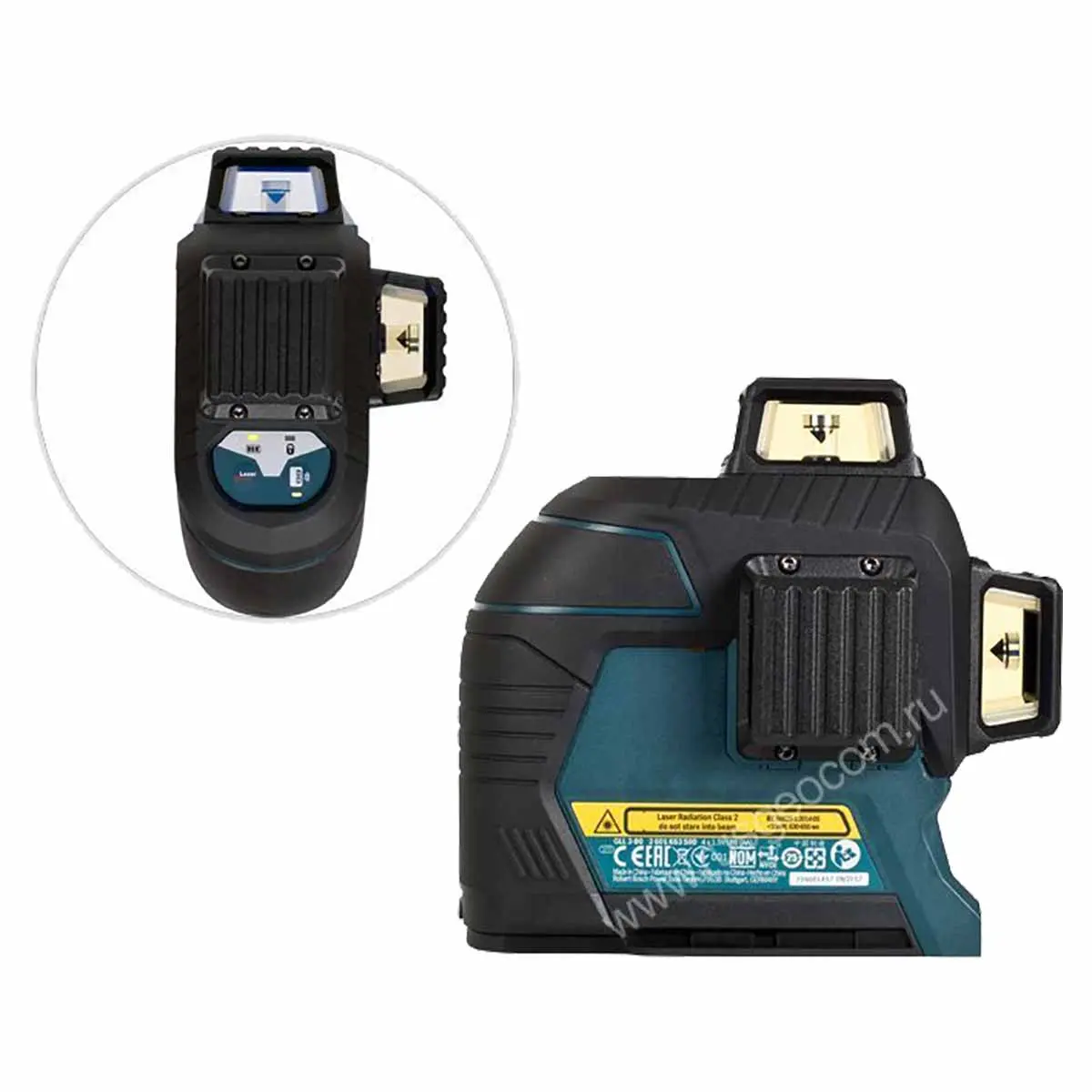 Наличие в лазерном уровне Bosch GLL 3-80 кейс магнитного маятника обеспечивает автоматическое выравнивание лазера в течение 4 секунд относительно горизонтальной поверхности, что минимизирует возможность неровного проецирования в пределах ±4°. При желании вы можете отключить эту функцию, например, в том случае, если необходимо построить наклонные линии. Фиксация компенсатора предполагает 3 режима: полная - для переноски, для построения наклонных линий и открытая - для автоматического нивелирования. При этом в уровне реализована система оповещения об отклонении от рабочей оси путем мигания лазерных лучей.