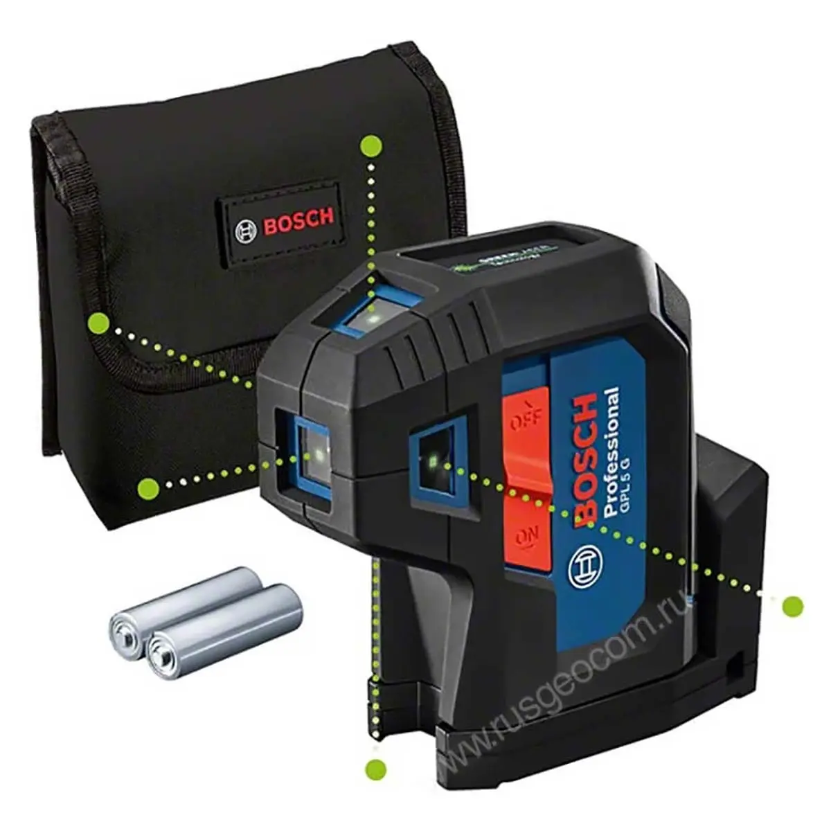 Лазерный уровень Bosch GPL 5 G Professional - компактный мобильный прибор для строительства и отделки. Лазерные точки зеленого цвета видно в 4 раза лучше, чем красные, что заметно упрощает разметку помещений, перенос точек и монтаж перегородок из гипсокартона.