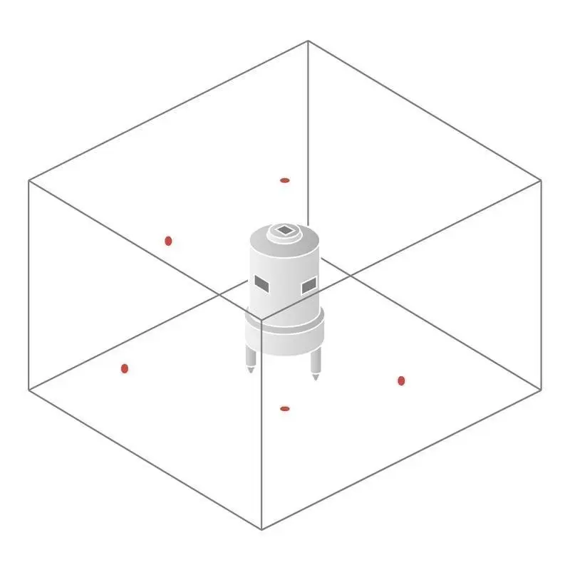 Конструкция Bosch GPL 5 Professional позволяет проецировать пять взаимоперпендикулярных осей: вперёд, направо, налево, вниз и вверх. Благодаря этому с помощью нивелира легко осуществляется построение прямых углов, перенесение опорных точек с пола на потолок и т.п. Отсутствие в конструкции рассеивающих призм, которые снижают интенсивность излучения в линейных построителях, позволяет заметно увеличить дальность действия прибора.