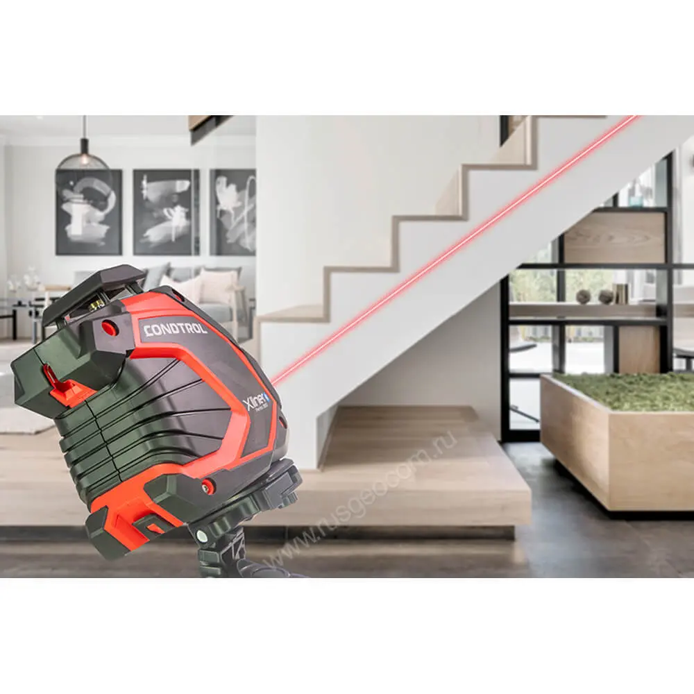 С Xliner Pento 360 можно проецировать лазерные лучи под любым углом. Чтобы перевести нивелир в режим работы под наклоном, нужно всего лишь заблокировать компенсатор и установить прибор в нужном положении. Данная функция обязательно пригодится, если возникнет необходимость в построении разметки под произвольным углом. Например, для монтажа лестничных перил и маршей, предметов декора, напольной плитки.