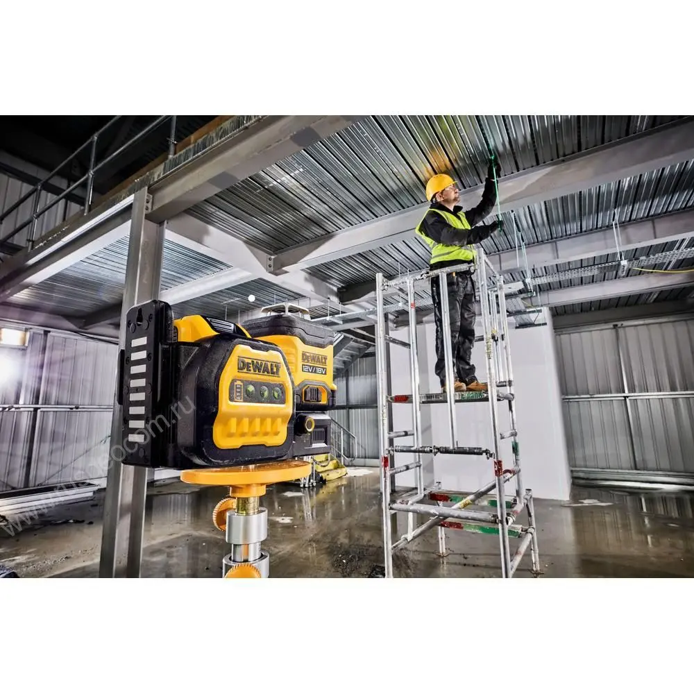 Устройство оборудовано функцией самовыравнивания лучей, небольшие погрешности установки не влияют на качество работы. Маятник компенсатора можно заблокировать для построения наклонных лучей и безопасной транспортировки.Интегрированная в конструкцию поворотная подставка с магнитами дает возможность повесить DEWALT DCE089NG18 на любой металлической поверхности, будь то труба или профиль под гипсокартонные перегородки. Также устройство можно разместить на любых штативах с резьбой форматов 1/4" и 5/8".