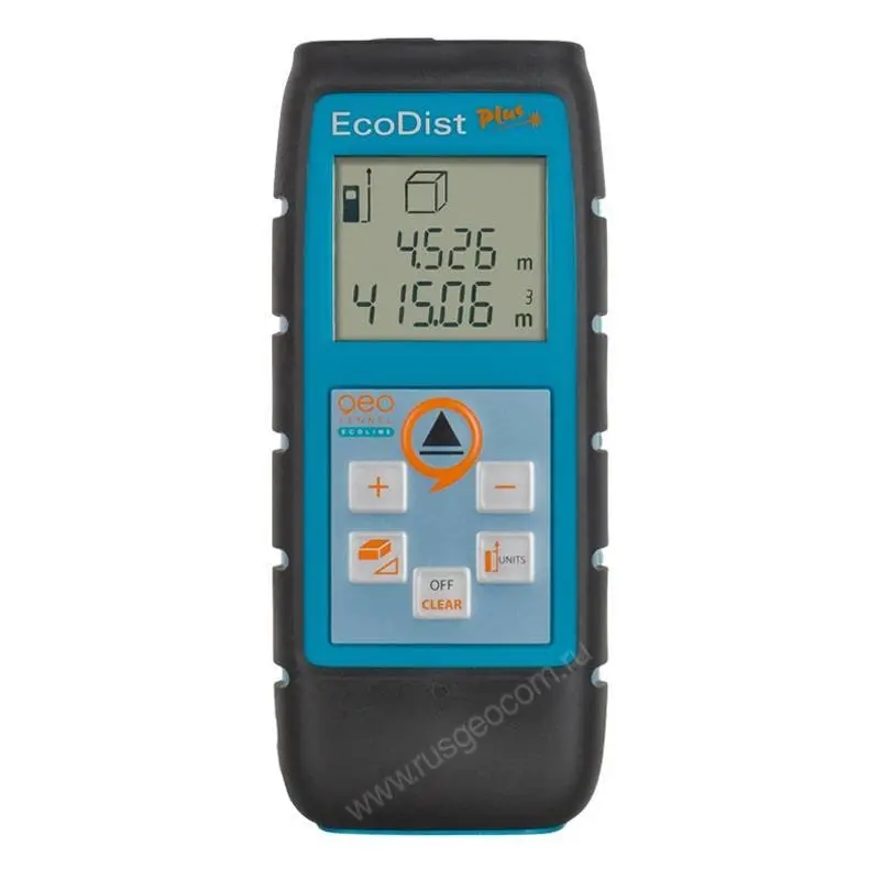 Помимо простого измерения расстояния от передней или задней кромки прибора, дальномер Geo-Fennel EcoDist Plus оснащен дополнительными возможностями, среди которых: сложение и вычитание результатов измерений, измерение периметра, площади и объема, определение недоступных расстояний по теореме Пифагора. Питание прибора осуществляется от 2-х стандартных батареек типа ААА, которые обеспечивают проведение до 3000 измерений.