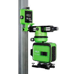 Вертикальные проекции лазерного нивелира RGK PR-38R можно расположить почти вплотную к стене. Это значительно упрощает выравнивание по углам и обеспечивает точность при выведении стенных плоскостей и укладке плитки.