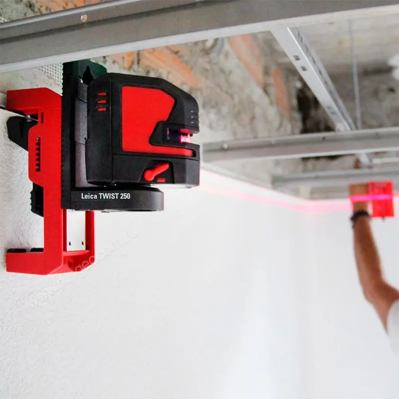 В комплект поставки лазерного уровня входит визирная пластина и поворотный на 250° магнитный адаптер TWIST250, оборудованный отверстиями под стяжки для установки на пластиковые трубы и столбы. Если необходимо расширить установочные возможности устройства, то хорошим решением станет покупка настенного крепления UAL130, телескопической штанги CLR290 или одного из фирменных штативов.