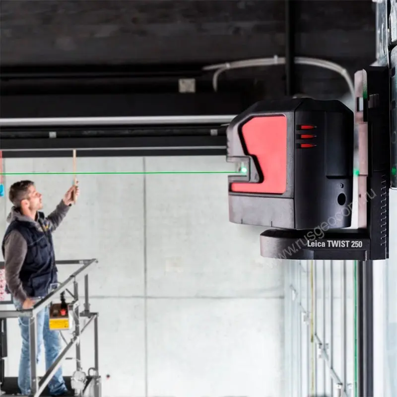 2 перекрестных луча вкупе с продуманными аксессуарами позволяют уверенно и высокой точностью укладывать плитку, монтировать потолки, стены из гипсократона и производить другие строительные операции. При блокировке компенсатора можно строить наклонные линии для установки перил и лестниц.