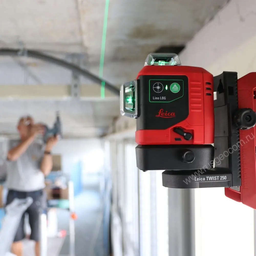 Самовыравнивающийся лазерный нивелир Leica Lino L6Gs-1 может работать от батареек, аккумулятора или от сети, что позволяет выполнять задачи в любых условиях и гарантирует непрерывный процесс измерений/разметки.