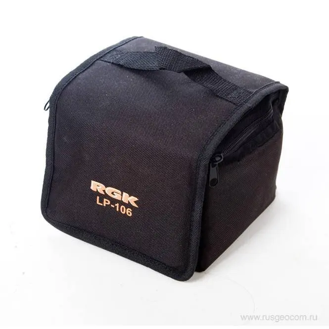 Лазерный нивелир RGK LP-106 очень прост и доступен в эксплуатации, работа с ним не требует специальной подготовки. Для выполнения разметочных работ на строительной площадке нивелир RGK LP-106 дополнительно может комплектоваться электронным детектором LD-8, который способен улавливать лазерный луч при любом освещении. Сразу же при включении прибор готов к работе: лазерный нивелир RGK LP-106 оснащен системой компенсации наклона прибора, основанной на простом и надёжном механизме магнитного маятника. Блокиратор компенсатора защищает механизм во время транспортировки, а так же позволяет строить наклонные плоскости. Устройство компенсирует отклонение от горизонтали в диапазоне 4°. Резьба крепления у LP-106 имеет диаметр ¼", для надежного крепления прибор на фотоштатив. Корпус прорезинен и разработан по современным стандартам, что позволяет защитить прибор от пыли, влаги, перепадов температуры. Прибор работает от трех батареек (аккумуляторов) типа АА, рабочее время при этом составляет более 10 часов.