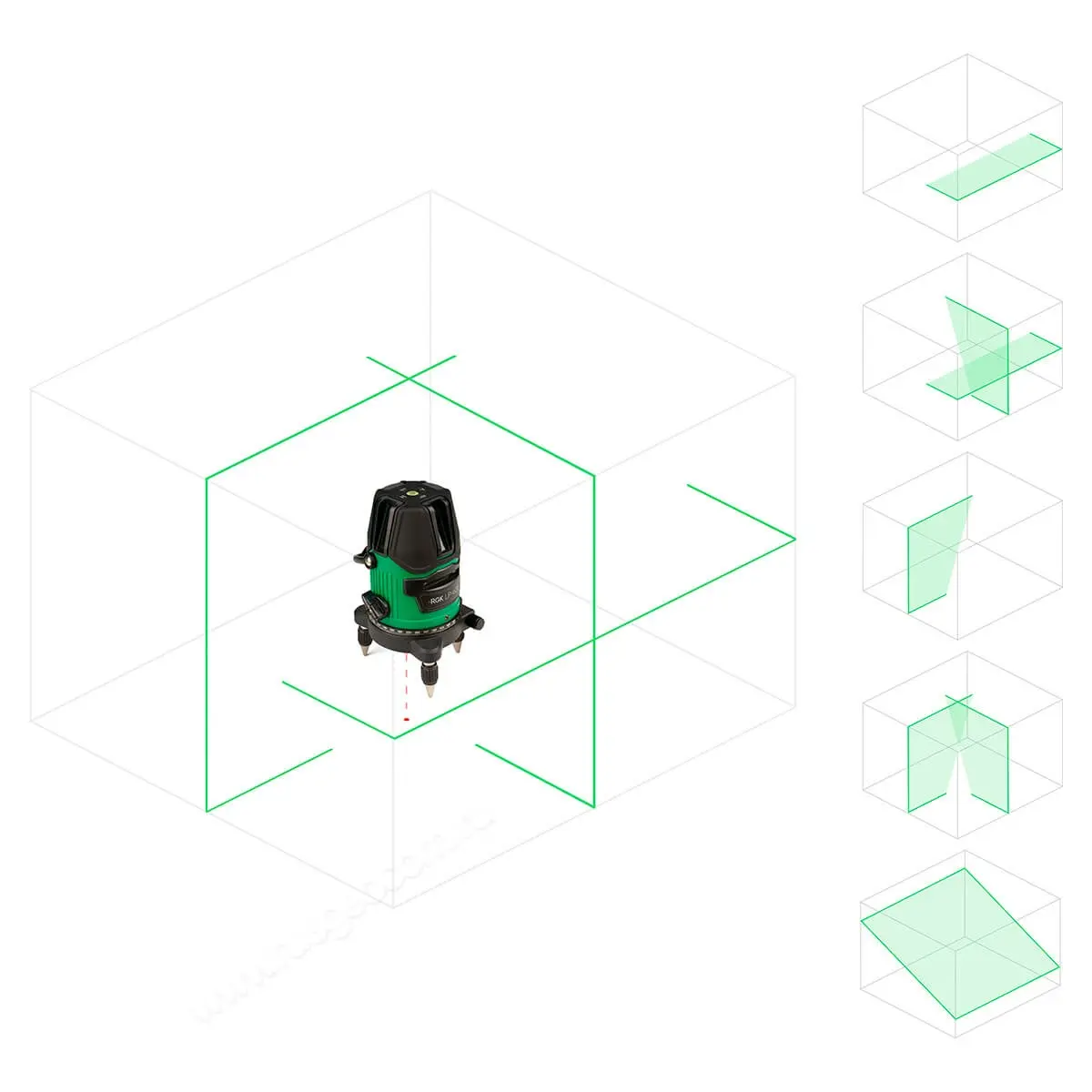 RGK LP-62G — простой в управлении, недорогой лазерный уровень, обладающий всеми необходимыми и дополнительными функциями. Проецируемый данной моделью зеленый луч виден значительно лучше красного луча аналогичных моделей, как в помещении так и на улице. С помощью этого устройства вы сможете решать самые разнообразные задачи – от разметки фундамента частного дома до заливки пола и укладки плитки. Является выгодным приобретением для любой строительной или ремонтной бригады.