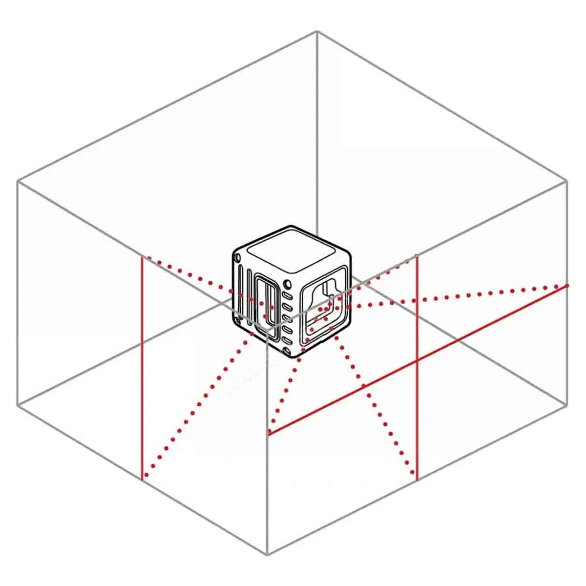 - Три лазерные плоскости: одна горизонтальная и две вертикальных.