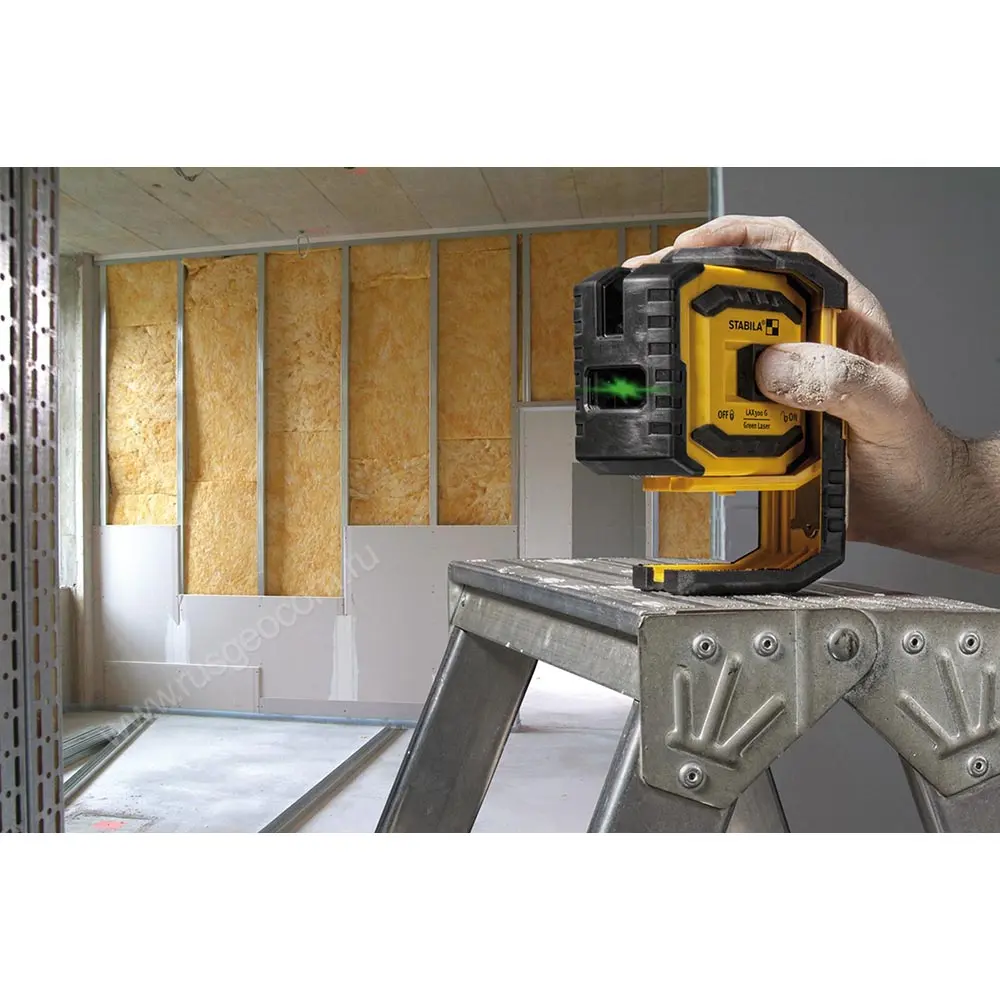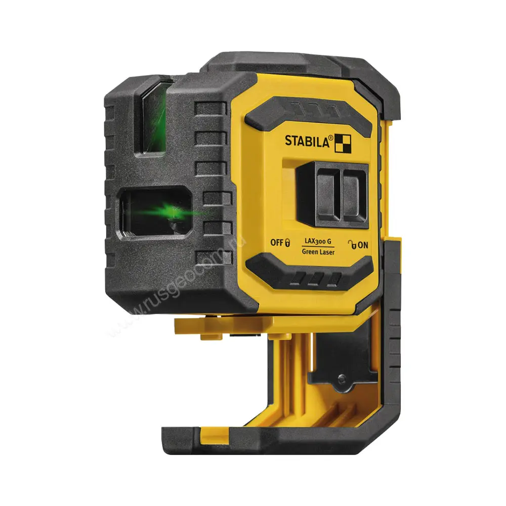 Прибор проецирует одновременно вертикальную и горизонтальную линии, а также попеременно: только горизонтальную или только вертикальную. Благодаря этому, экономится заряд батареи и увеличивается время автономной работы лазерного уровня Stabila LAX 300G.