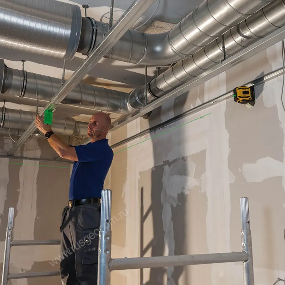 Лазерные светодиоды проецируют яркие и четкие линии зеленого цвета. Это позволяет эффективно работать с устройством даже вне помещений, при солнечном освещении без приемника.