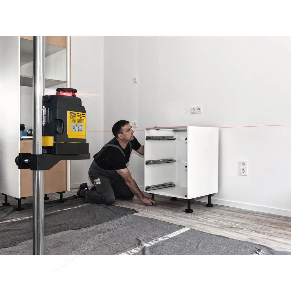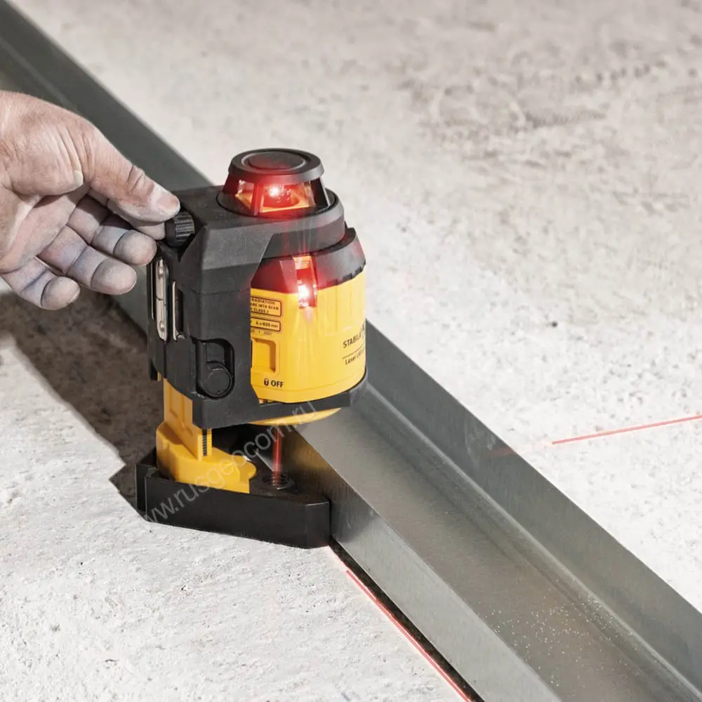 Яркий и тонкий лазерный луч отлично виден на расстоянии до 20 метров, что позволяет охватить лазерной плоскостью максимальное рабочее пространство. Например, лазерный уровень STABILA LAX 400 можно установить в центре квартиры, охватывая сразу несколько помещений для выполнения точной заливки пола на один уровень по всей жилой площади. Также прибор оснащён лазерным отвесом.