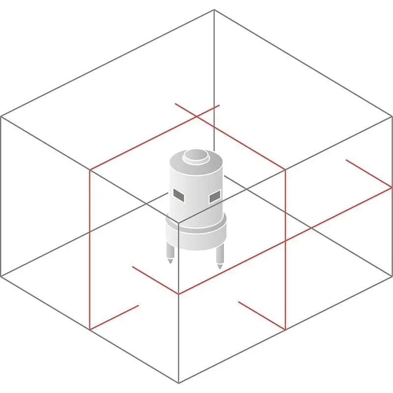 Специальный режим "OUTDOOR" предназначен для работы на улице или при ярком освещении, и позволяет обрабатывать входящий луч специальным лазерным приёмником на расстоянии более 50 метров. Приемник можно приобрести как дополнительный аксессуар. В обычном режиме дальность видимости лазерных плоскостей составляет 20 метров.