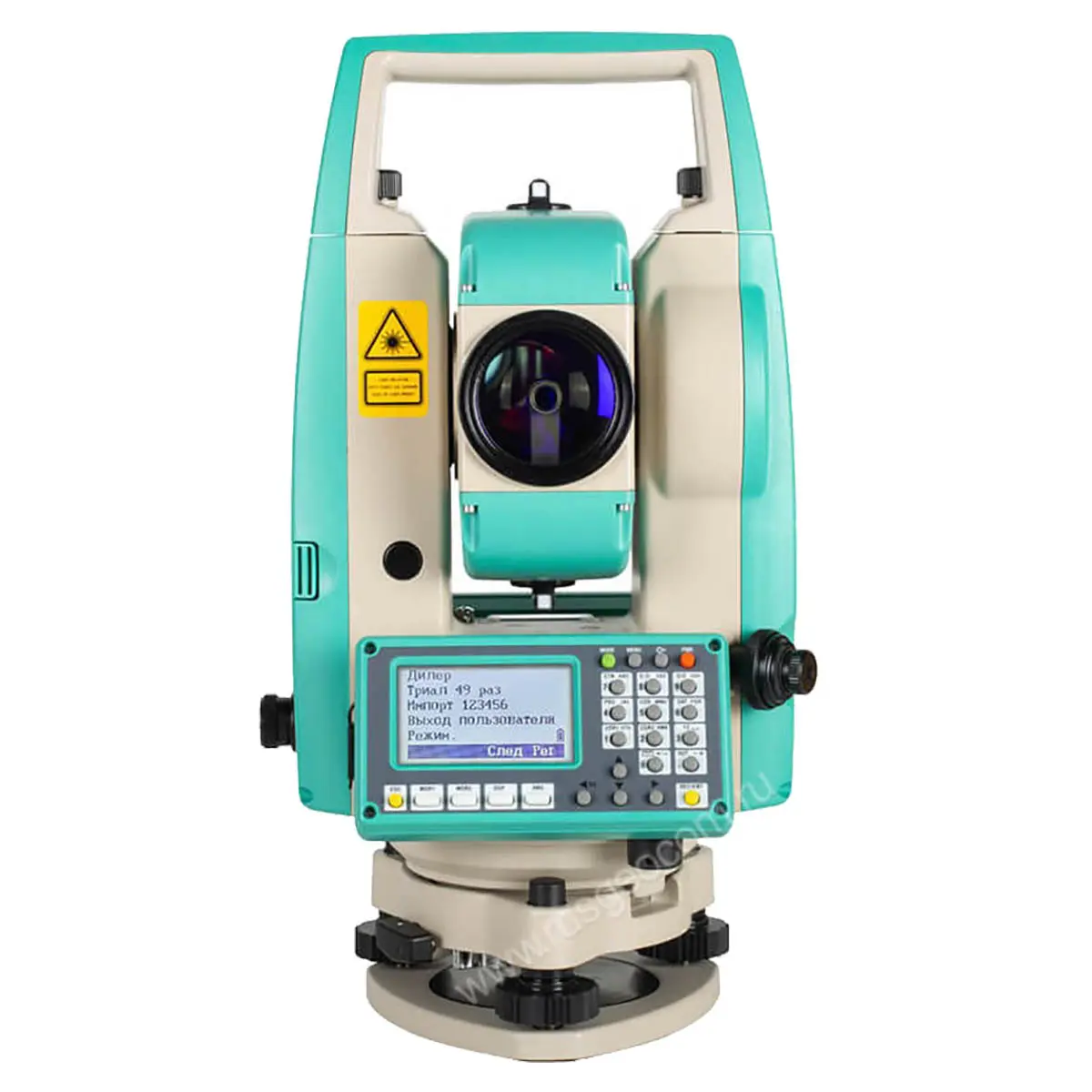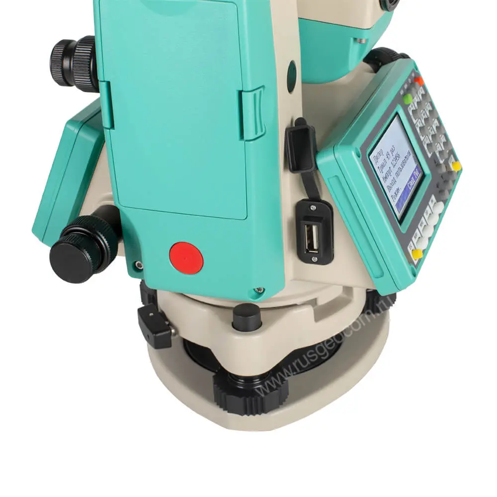 Для запуска измерений используется большая кнопка, расположенная на боковой поверхности корпуса. Благодаря такой конструкции не требуется смотреть на экран или искать нужную клавишу на клавиатуре. Съемку точек можно проводить без отрыва от окуляра, сразу после наведения Ruide R2 2" на цель. Кроме того, при таком формате работы значительно уменьшается дрожание прибора, которое возникает при работе с клавиатуру.