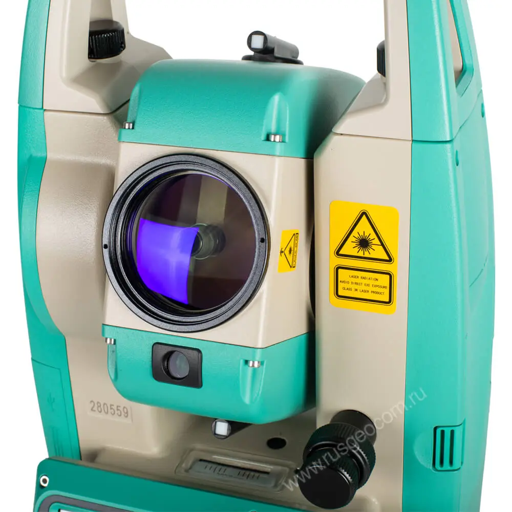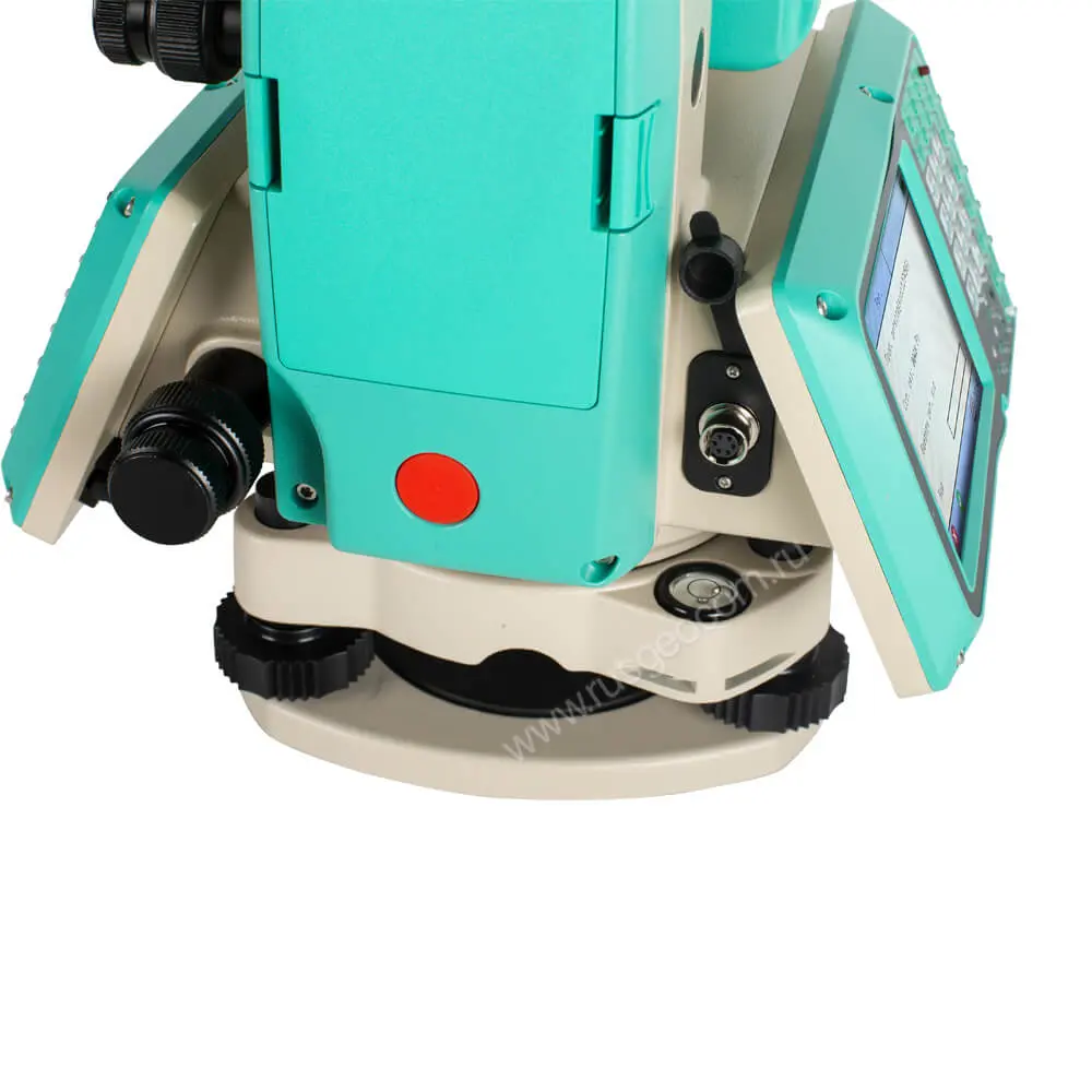 Для запуска измерений используется большая кнопка, расположенная на боковой поверхности корпуса. Благодаря такой конструкции не требуется смотреть на экран или искать нужную клавишу на клавиатуре. Съемку точек можно проводить без отрыва от окуляра электронного тахеометра , сразу после наведения на цель. Кроме того, при таком формате работы значительно уменьшается дрожание прибора, которое возникает при работе с клавиатуру.