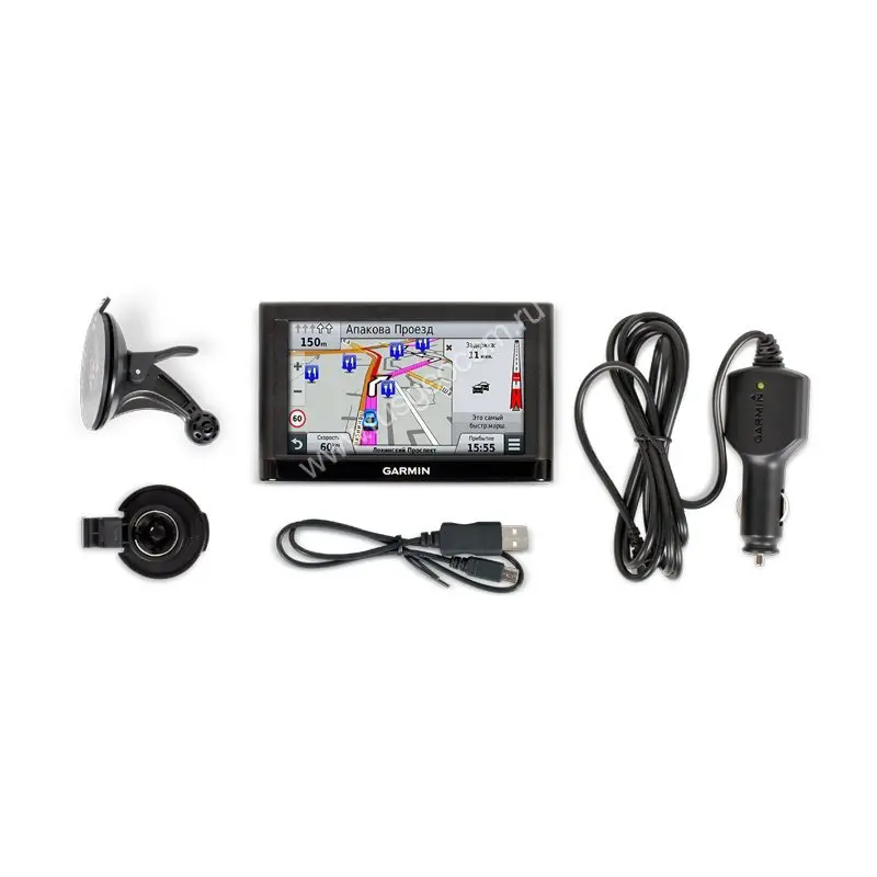 Единственная физическая кнопка в навигаторе Garmin NUVI 55LMT – включение питания. Всё остальное управление происходит при помощи 5" сенсорного экрана. На задней поверхности корпуса размещается разъём miniUSB для подключения к сети или к ПК для загрузки новых карт. Кабель для подключения к прикуривателю обладает достаточной длиной для того, чтобы его можно было спрятать за обшивку автомобиля. Удобство в использовании, наглядность отображения информации и гибкие пользовательские настройки делают навигатор Garmin NUVI 55LMT незаменимым штурманом.