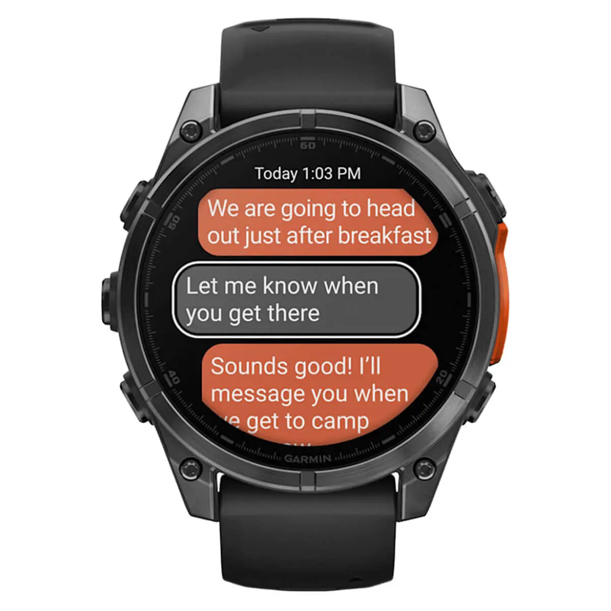 Модель Garmin Fenix 8 Slate Gray 47mm c черным ремешком реализует в себе все стандартные функции премиальных смарт-часов, включая контроль здоровья, управление музыкой, бесконтактную оплату, уведомления с сопряженного смартфона и т.д. Наличие встроенного микрофона и динамика позволяет совершать и принимать звонки, не доставая коммуникатора, а также делает доступными мультимедийные функции, без необходимости задействования наушников. Встроенный на боковой поверхности многорежимный фонарик может использоваться для подсветки и подачи сигналов в темное время.