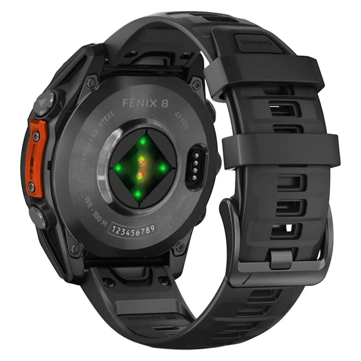 Часы Garmin Fenix 8 Slate Gray 47mm c черным ремешком – высокопроизводительное смарт-изделие премиум класса с AMOLED дисплеем, реализующее мультиспортивные, навигационные и смарт-функции. Как топовое устройство в линейке Феникс, данная модель оснащается новыми аппаратными и программными решениями, которые недоступны в предыдущих генерациях. Благодаря среднему типоразмеру и нейтральной цветовой гамме, она сочетается не только со спортивным, но и с классическим стилем, и подходит и мужчинам, и женщинам.