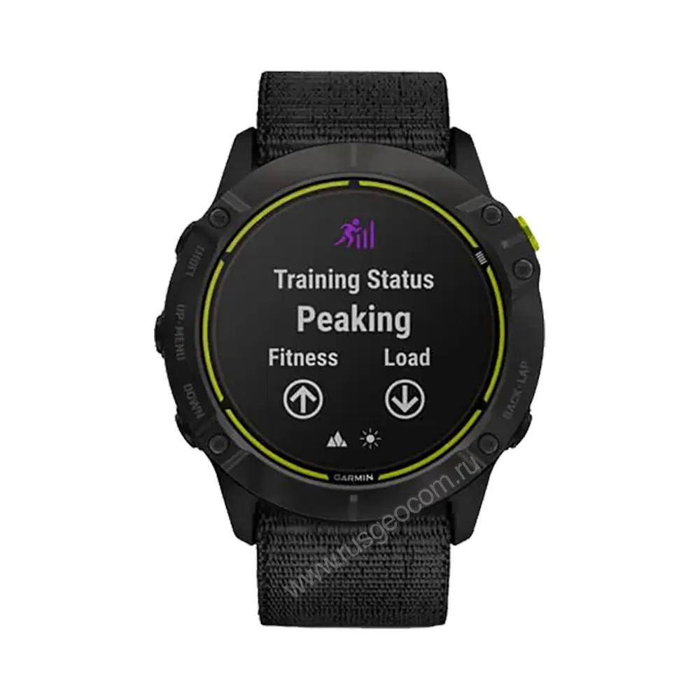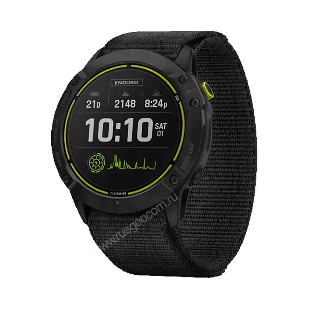 Часы Garmin Enduro титановый корпус с угольно-серым DLC-покрытием и черный нейлоновый ремешок UltraFit созданы специально для бегунов на дальние дистанции, любителей сверхмарафонов, ультратрейлов, длительных походов и т.п. Главной особенностью серии является отказ от излишнего для таких целей функционала в пользу высокой автономности.
