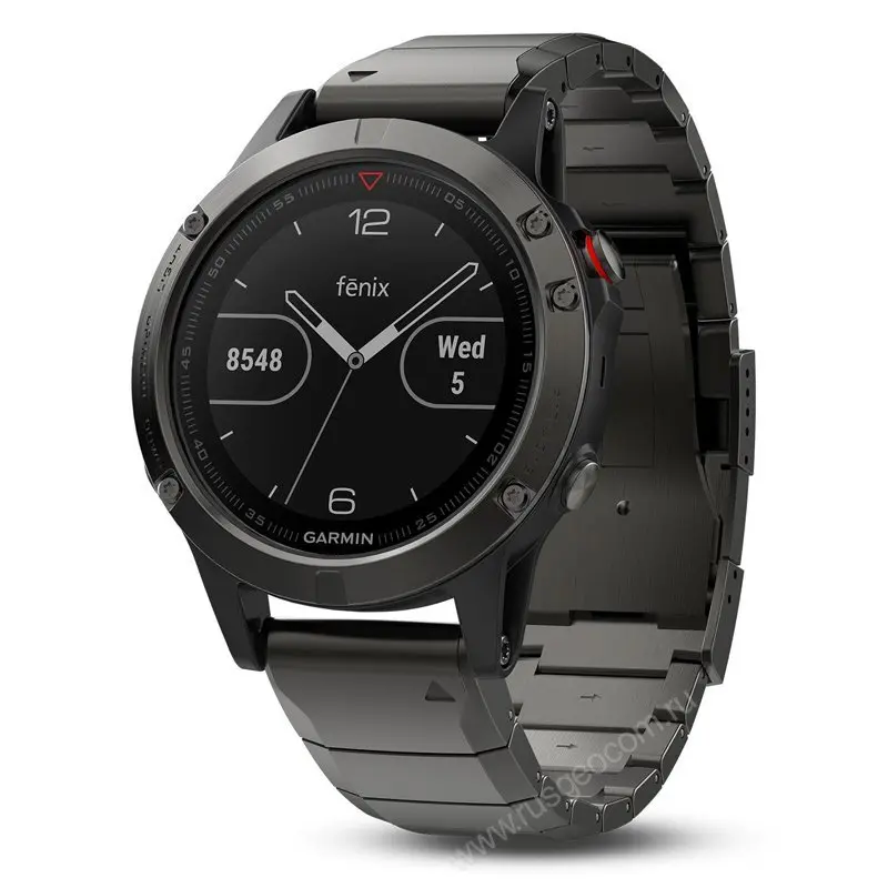 - Fenix 5 серые часы с металлическим браслетом, сапфировым стеклом и Wi-Fi.