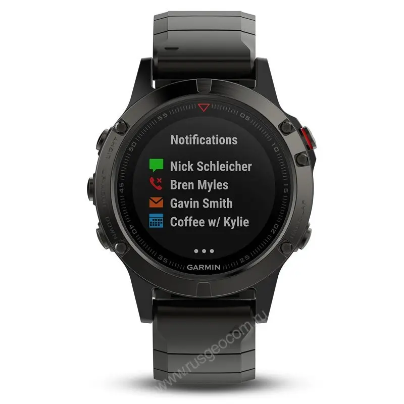Умные уведомления через fenix 5 позволяют получать электронные письма, тексты и предупреждения прямо на ваших часах - будь то на тропе, на поле для гольфа или просто подальше от компьютера. Другие смарт функции включают автоматическую загрузку в онлайн-сообщество Garmin Connect, онлайн-мониторинг и обмен с социальными медиа через наши бесплатные приложения Garmin Connect для мобильных устройств.