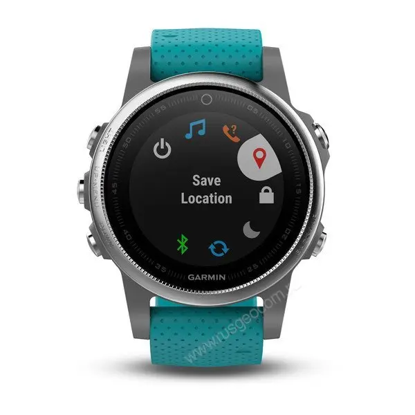 - Fenix 5S компактные часы (42 мм) серебристые с бирюзовым ремешком.
