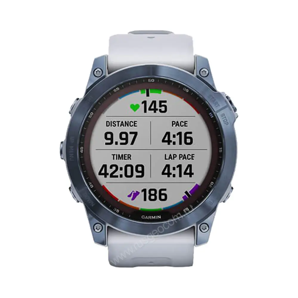 Часы Garmin Fenix 7X Sapphire Solar титановый синий минерал DLC с белым ремешком