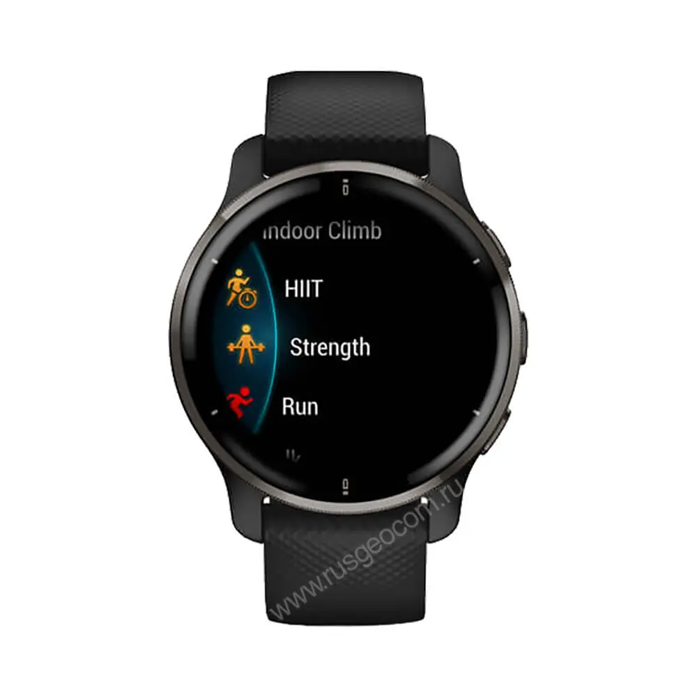 - Анимированные экранные тренировки - часы поставляются с предзагруженными наглядными анимированными тренировками для йоги, пилатеса, кардио, силовых тренировок и высокоинтенсивных интервальных тренировок (HIIT). Дополнительные тренировки можно загрузить из приложения Garmin Connect.