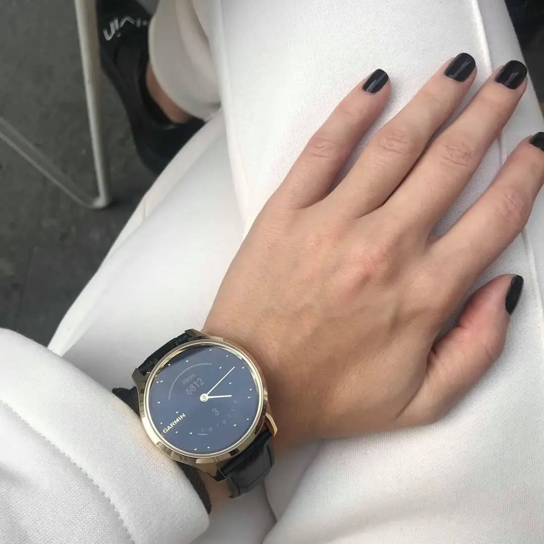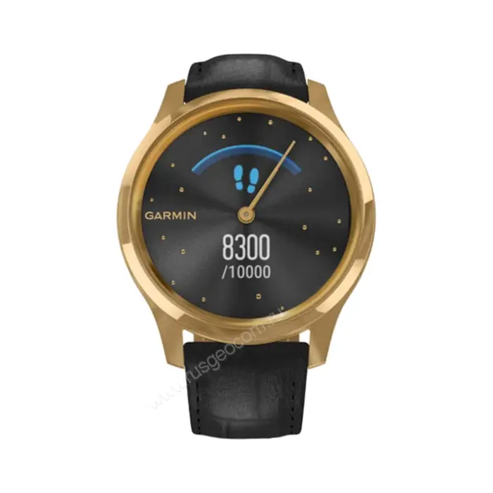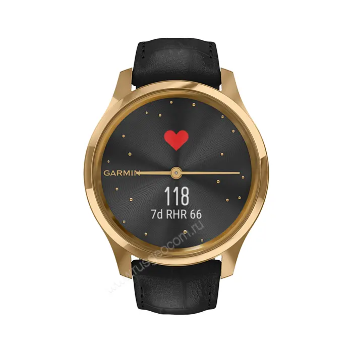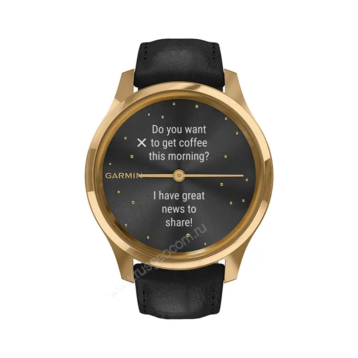 Часы Garmin Vivomove Luxe золотистые черные с кожаным ремешком - представитель гибридной линейки, в которой стильный вид циферблата с механическими стрелками удачно сочетается с функционалом смарт-часов.