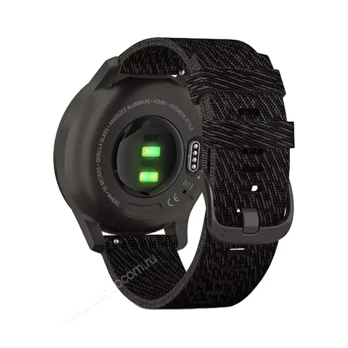 Используемые материалы Материал стекла - выпуклое стекло Corning® Gorilla® Glass 3 Материал кольца вокруг циферблатаАнодированный алюминий Материал корпусаАнодированный алюминий Материал ремешкаСиликон или тканый нейлон Функции часов Время/дата Автоматические поправки перехода на летнее/зимнее время Будильник Таймер Секундомер Хронограф Аналоговые стрелки Датчики Пульсометр на запястье Garmin Elevate™ Барометрический альтиметр Акселерометр Датчик освещенности PulseOx Интеллектуальные функции для ежедневного использования Интеллектуальные оповещения Текстовые ответы/ отклонение телефонного вызова с передачей текстового сообщения (только Android™) Подключаемый GPS-приемник Подключения: Bluetooth® Smart и ANT+® Календарь Погода Управление музыкой на смартфоне "Найди мой телефон" "Найди мои часы" Совместимость со смартфонами: iPhone®, Android™ Совместимость с Garmin Connect™ Mobile Функции трекера активности Счетчик шагов Индикатор движения (появляется на экране устройства после периода без активности; чтобы сбросить индикатор, встаньте и походите пару минут) Автоматическая цель (устройство изучает ваш уровень активности и предлагает ежедневное целевое количество шагов) Наблюдение за сном (определение общей продолжительности сна и периодов беспокойного и спокойного сна) Сожженные калории Этажи подъема Пройденное расстояние Минуты интенсивных занятий TrueUp™ Move IQ™ Спортивный возраст: Да (в приложении) Монитор энергии Body Battery™ Отслеживание уровня стресса в течение дня Спортивное оборудование/ спортзал Профили занятий в спортзале: Силовые, кардио и эллиптические тренировки, подъем по лестнице, йога Автоматический подсчет повторов Тренировки, планирование и анализ Настраиваемые страницы данных Настраиваемые профили занятий Интервальные тренировки AutoLap® (автоматическое начало круга) V02 max Пользовательские предупреждения Функции частоты пульса Зоны ЧП Предупреждения по ЧП Калории на основе ЧП % макс. ЧП Передача ЧП (передача данных ЧП поANT+™ на сопряженные устройства) Частота дыхания (во время упражнений): Только йога Частота дыхания (весь день и во сне) Функции для бега Доступные профили для бега: Бег Расстояние, время и темп на основе GPS Функции для велоспорта Доступные профили для велоспорта: Велоспорт Предупреждения по времени/ расстоянию (при достижении целевого параметра выдается сигнал) Функции для плавания Доступные профили для плавания: Плавание в бассейне (базовое) Функции для отслеживания активности детей Задания Toe-to-ToeTM Подключения Совместимость со смартфоном: iPhone®, Android™