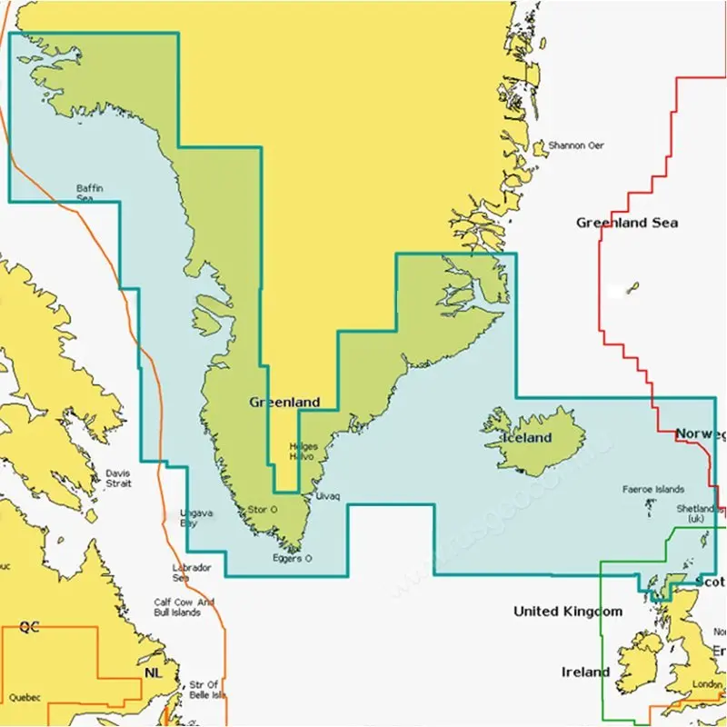 Зона покрытия карты:Западная Гренландия, Южная Гренландия, Исландия. От Нортумберленда до Като Фарвель, Наторст Форт. Включает Скорби Санд, Диско Багт, Мелвилл, Нуук в Гренландии и Фарерские острова, Шетландские острова, острова Оркни, Гебриды и Северо-Запад Шотландии от пролива Ри до Гелмсдал.