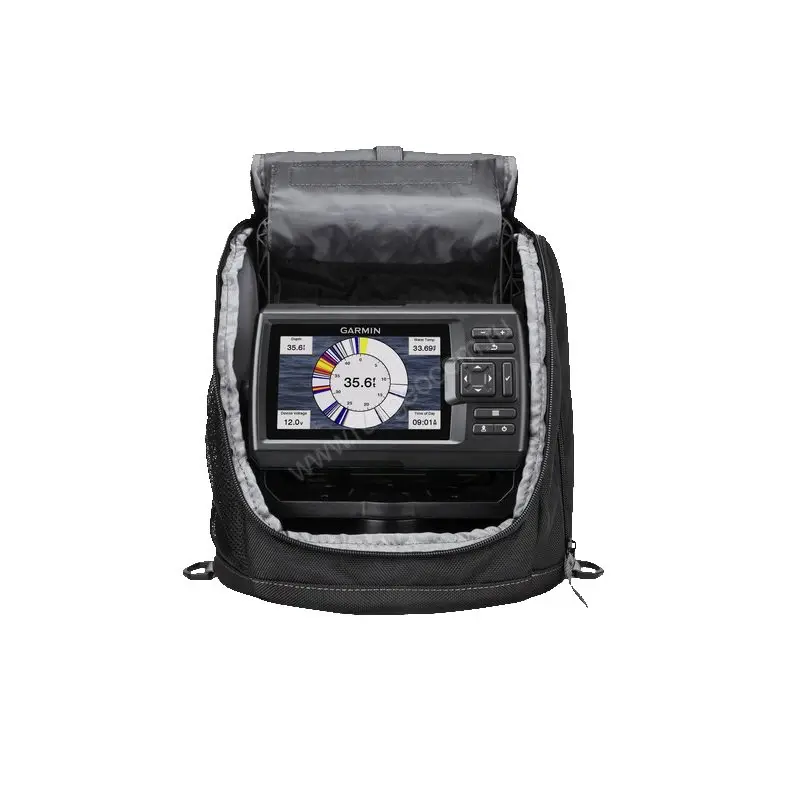 - Переносная сумка помогает удобно разместить эхолот, кабели и аккумулятор для дневной рыбалки на льду