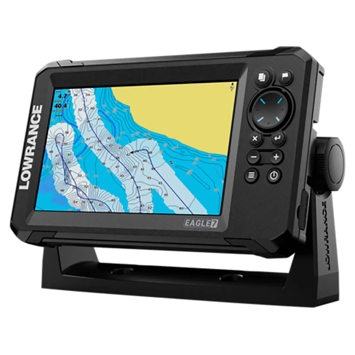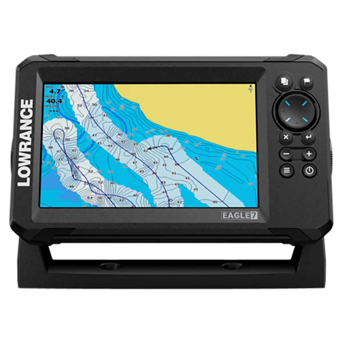 8-кнопочная панель: клавиши масштабирования (Zoom +/-), Выход (Exit), Ввод (Enter), Меню (Menu), Точка маршрута (Waypoint), Питание/Подсветка (Power / backlight)