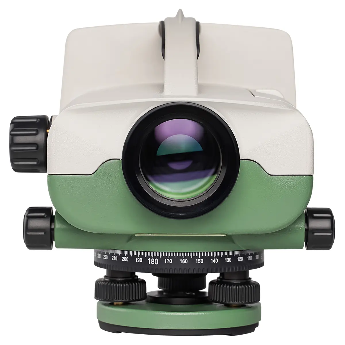 - Наглядность – с передней панели цифрового нивелира можно выполнять настройки, считывать цифровые результаты измерений, управлять сохраняемыми данными, а также снимать показания визуально через зрительную систему, контролируя при этом горизонтальность положения прибора по круглому жидкостному уровню через отверстие с зеркалом.