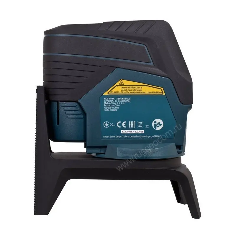 Входящее в состав комплекта универсальное крепление RM2 позволяет зафиксировать лазерный нивелир Bosch GCL 2-50 C на полу или стене. Надежная установка на крепление достигается встроенными магнитами и фиксирующей защелкой на устройстве, а специальная регулирующая ручка обеспечит максимально точное положение уровня. На свое усмотрение вы можете в качестве элемента питания использовать 4 батареи типа АА или литий-ионный аккумулятор. Стоит учитывать, что для более длительного применения целесообразнее будет выбрать аккумулятор. Кстати, для него в комплект входит зарядное устройство. Класс защиты международного стандарта IP 54 обеспечивает эксплуатацию на открытых строительных площадках. Прорезиненные вставки оберегают корпус от повреждений при возможных падениях.
