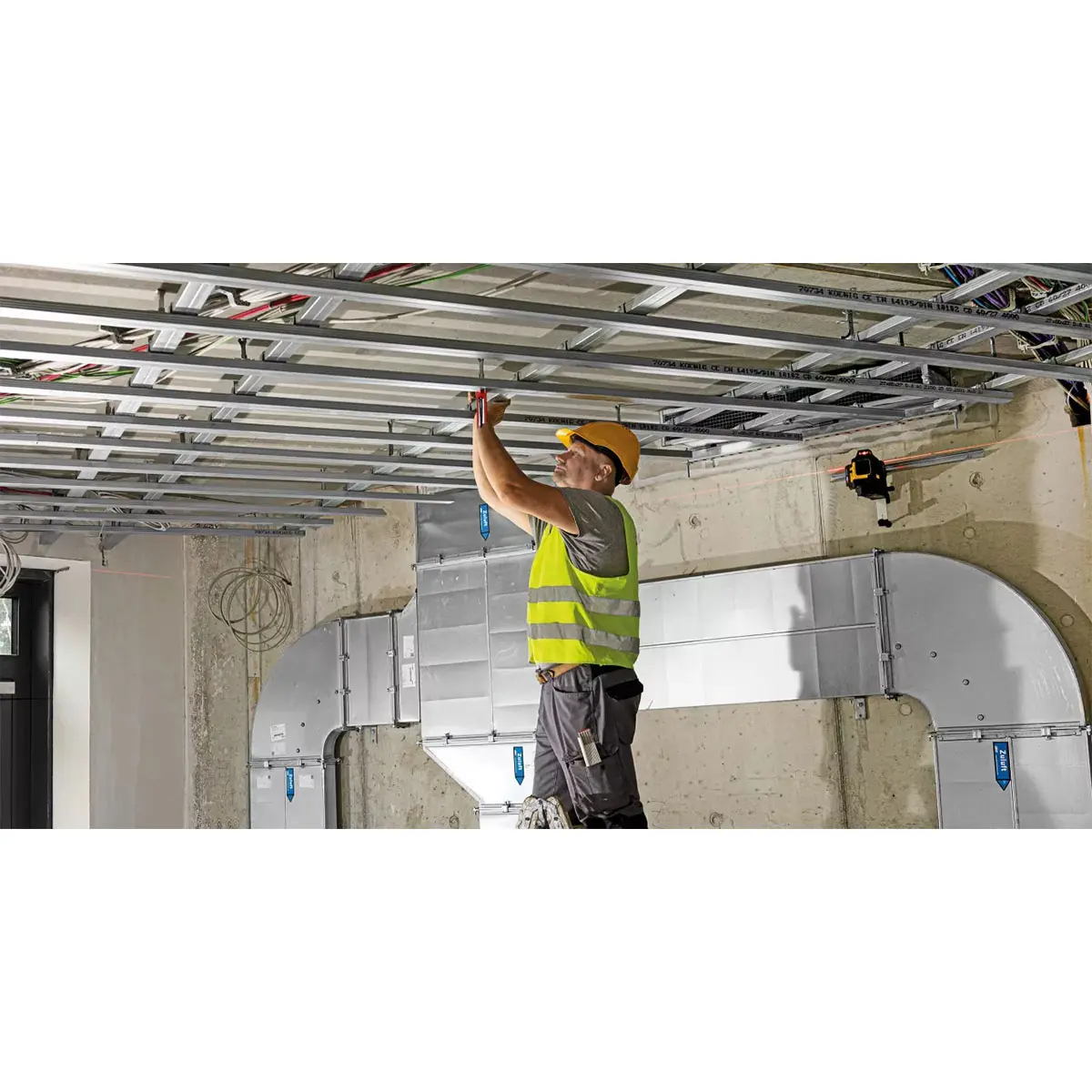 Прибор выполнен из прочных материалов: алюминиевые и стеклянные каркасы, а также амортизирующий корпус Softgrip обеспечивают защиту оптики от механических повреждений и загрязнений. Это особенно важно на строительных площадках, где инструменты подвергаются высоким нагрузкам и воздействиям.