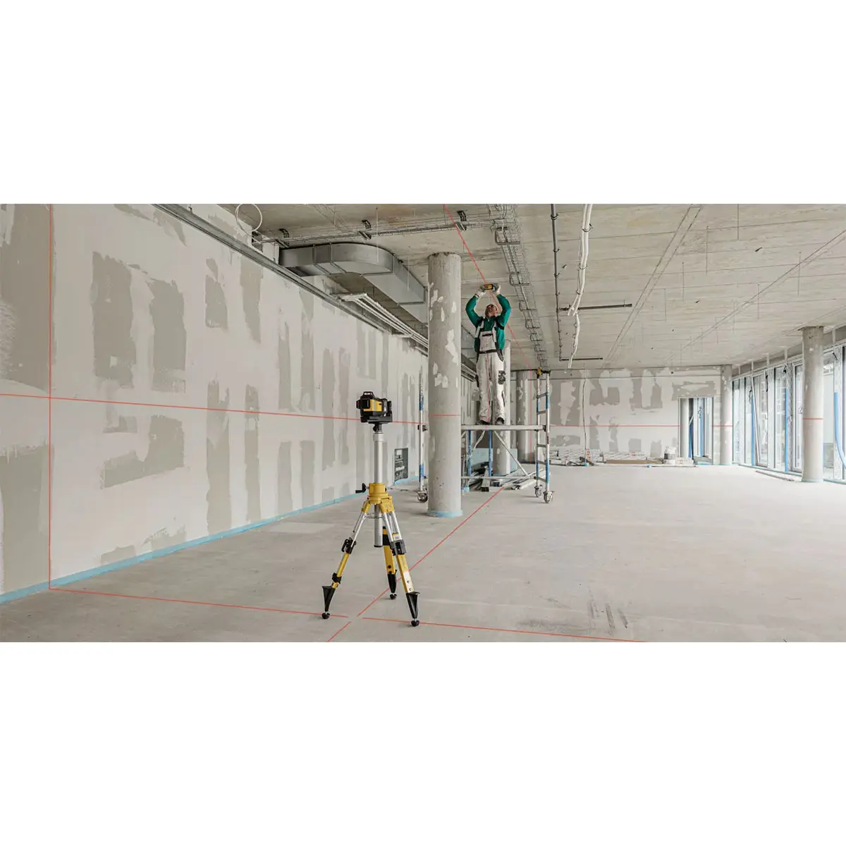 Прибор оснащен тремя мощными излучателями, которые создают лазерные линии на 360° красного цвета. Это позволяет пользователю легко выполнять разметку в любом направлении, обеспечивая максимальную видимость даже на значительных расстояниях — до 30 метров. Благодаря высококачественным диодам, линии четкие и хорошо различимые, что особенно важно при работе в условиях яркого освещения.