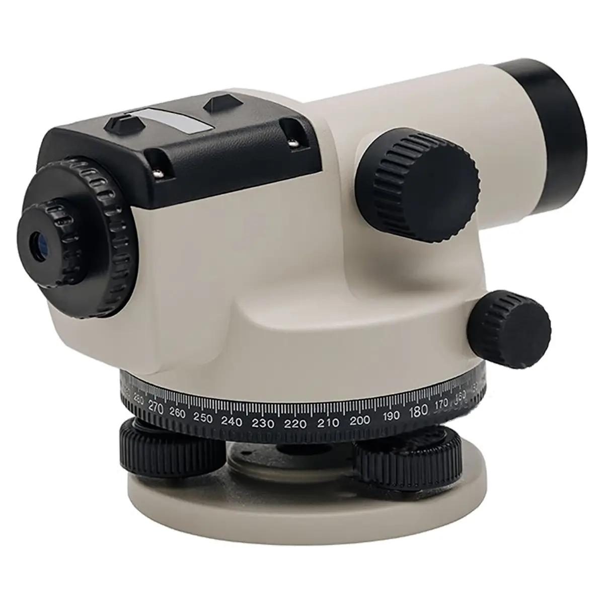 Наличие окуляра для предварительного наведения. Благодаря этому, вы можете быстрой навести прибор на рейку, не используя основной окуляр.