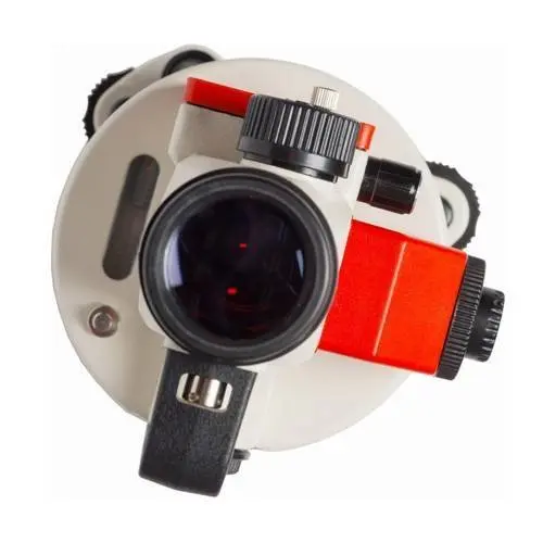 При помощи оптической трубы обратного изображения оператор во время проведения измерительных работ может контролировать точность положения лазерного пятна. Плановое положение точки можно передать в направлении зенит. Оптика прибора вертикального проектирования ADA Vertical имеет увеличение 25х. При диаметре объектива в 36 мм угол обзора составляет 1° 50′, а минимальное расстояние визирования равно 0,8 м.