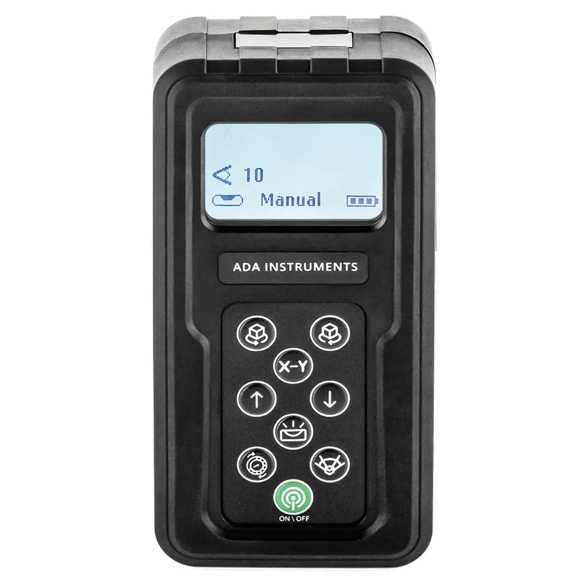 Дистанционный пульт управления. В диапазоне до 100 метров удобно пользоваться пультом дистанционного управления. Для изменения режимов работы не надо подходить к лазерному нивелиру. На экране пульта отображаются все режимы работы ADA ROTARY 500 HV-G Servo.